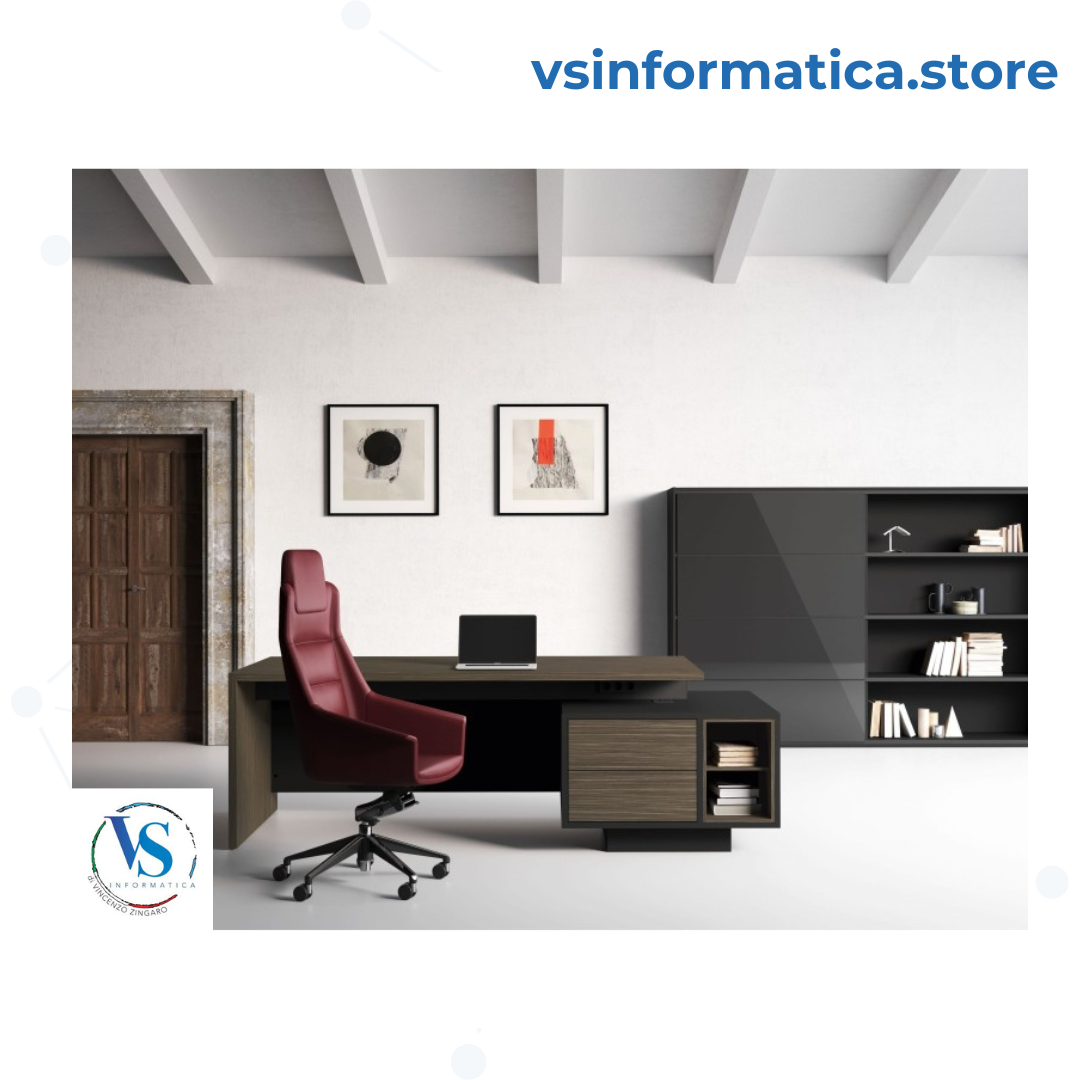 Scrivania rettangolare con cassettiera e vano mensola